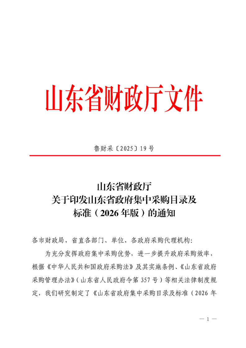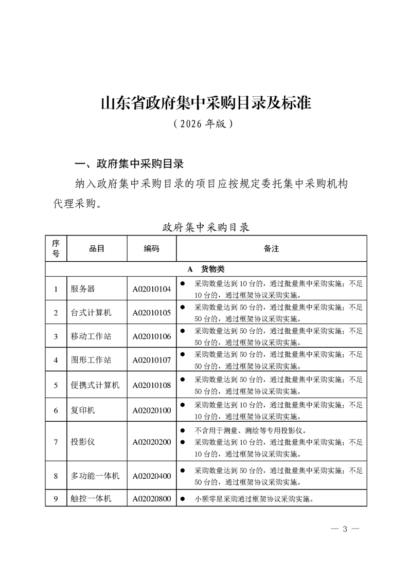 山东省财政厅关于印发山东省政府集中采购目录及标准(2026年版)的通知