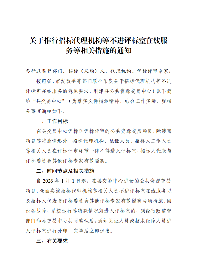 关于推行招标代理机构等不进评标室在线服务等相关措施的通知